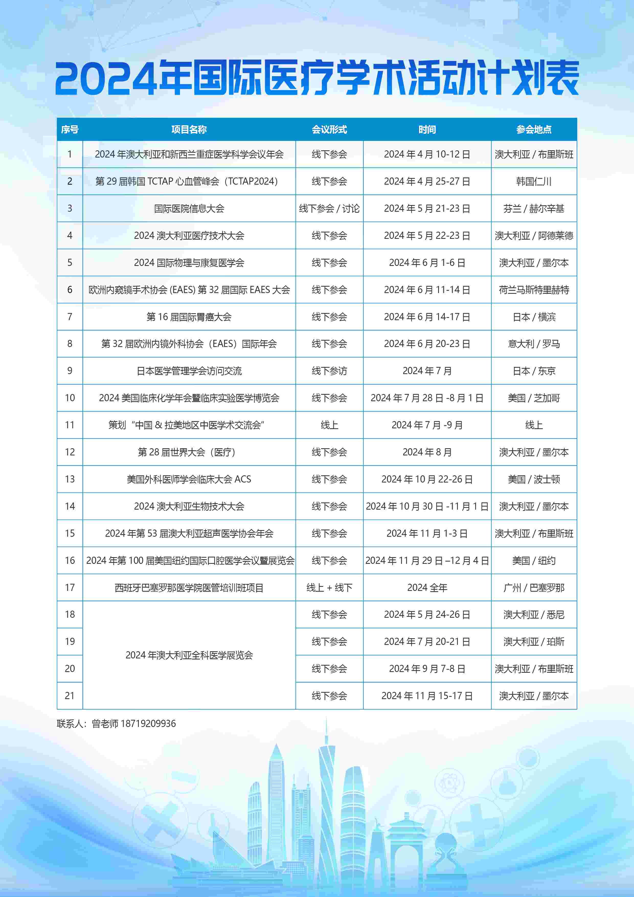 2024年国际医疗学术活动计划表